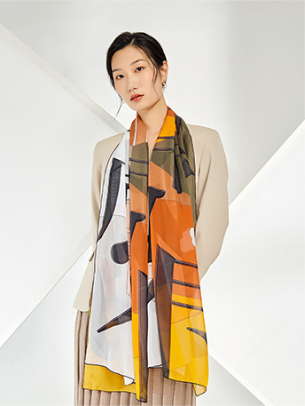 萃選中國文字取其形韻之美,重新以當代時尚色彩演化,跳脫傳統絲巾的設計舊白。這款絲巾,兼具時尚感與文化美感,給人以美的享受。
